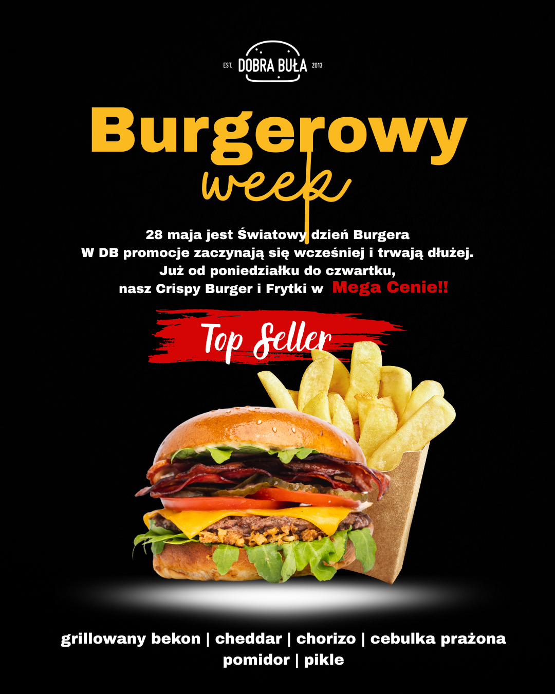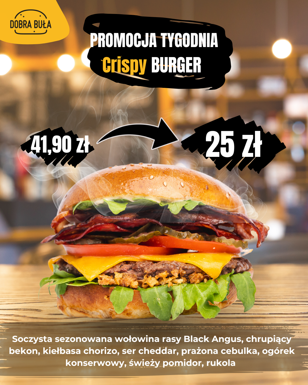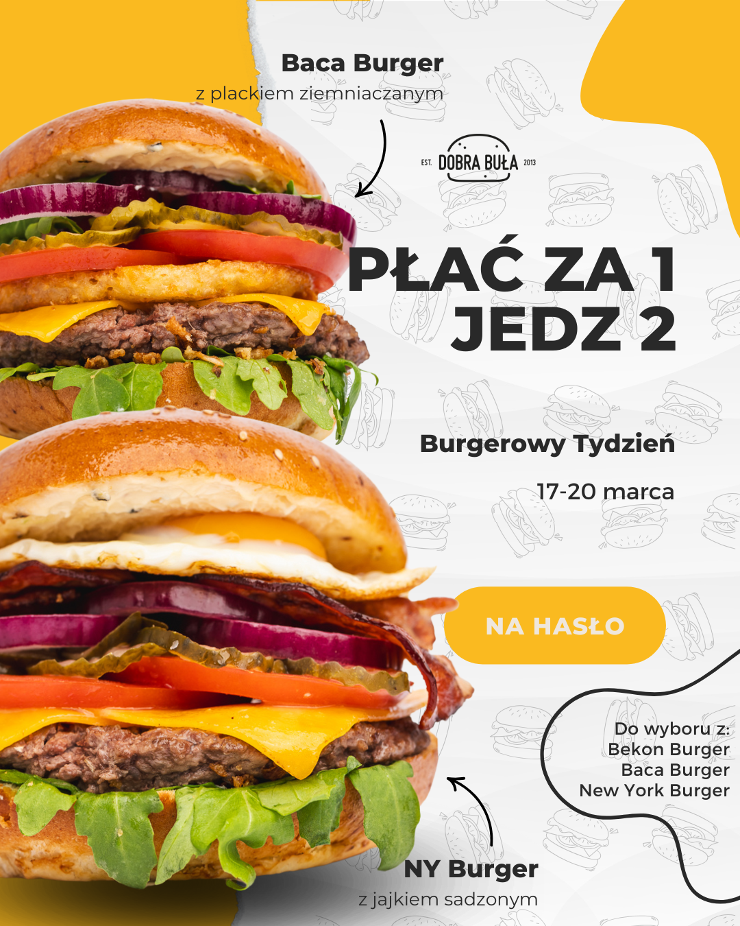 Zajrzyj po burgera, którym naprawdę możesz się pochwalić! W Dobrej Bule na Mokrej, sam wybierasz swoją bułkę (pszenna, żytnia, bezglutenowa albo keto), stopień wysmażenia mięsa i sos z autorskiej receptury. Burger tworzony jest tu zawsze ze świeżych, starannie wybranych składników. Liczy się naturalność, smak i szybkość podania – niezależnie, czy wybierasz klasycznego burgera, czy pełną personalizację. Dobra Buła to miejsce, do którego wracasz po więcej – od 2013 roku szlifuje burgery od food trucka po rozpoznawalny lokal w Warszawie, gdzie setki fanów chwalą smak i możliwość tworzenia burgera po swojemu. Masz ochotę na coś ekstra? Sprawdź, dlaczego te burgery doceniło już tylu smakoszy! 🍔🧡